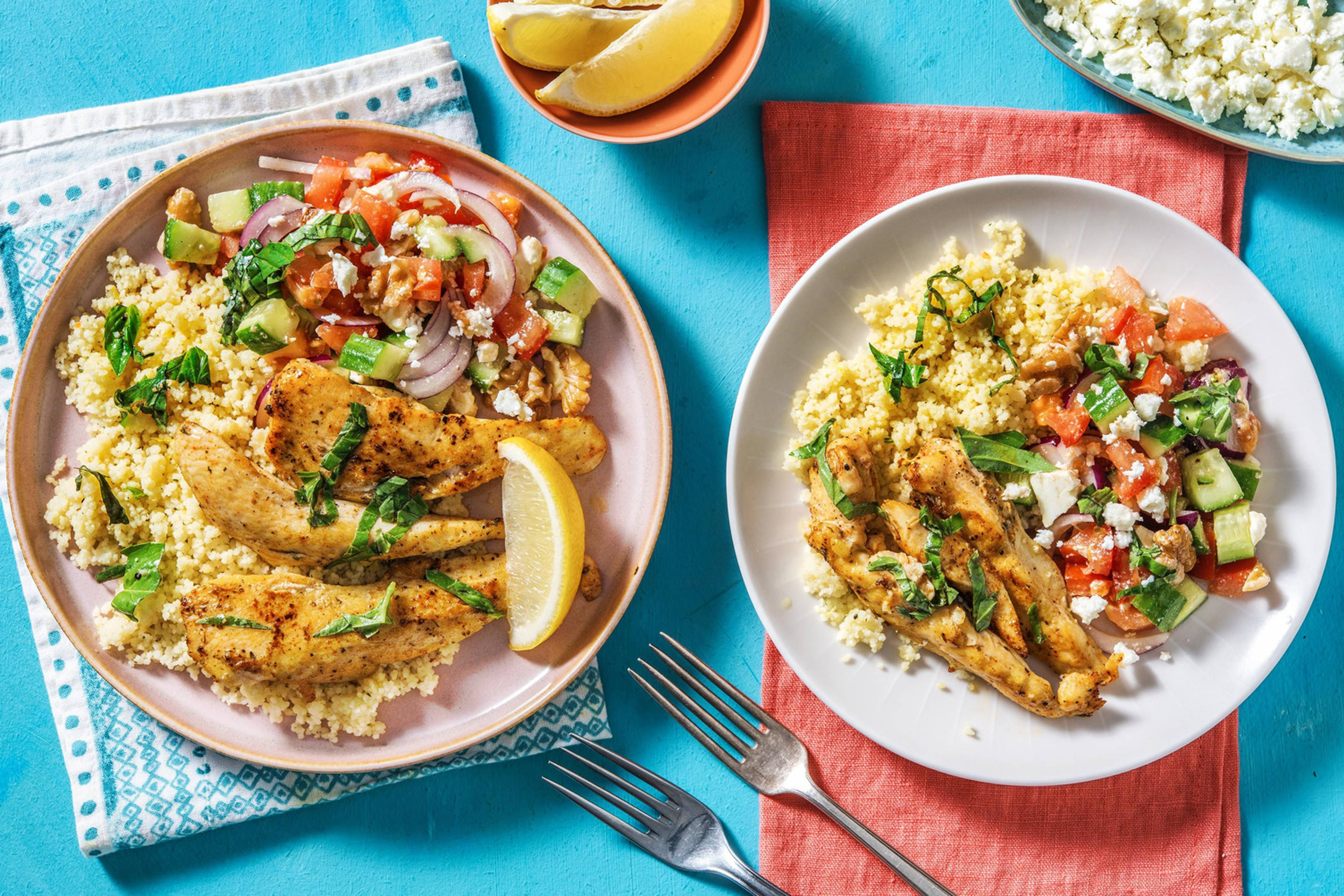 Varm opp nok olivenolje til å dekke bunnen av en stekepanne på middels høy varme. Stek kylling i 3-4 min på hver side, til gyllen. TIPS: Tilsett mer olivenolje etter behov, slik at kyllingen ikke fester seg i stekepannen.