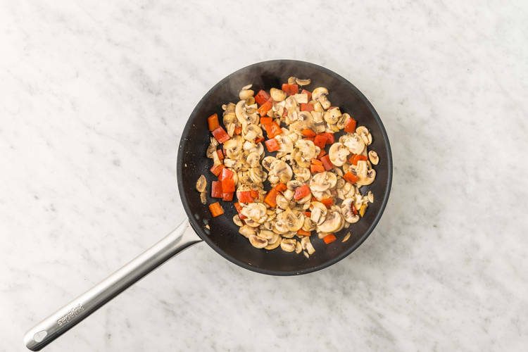 with creamy mushroom and bell pepper sauce