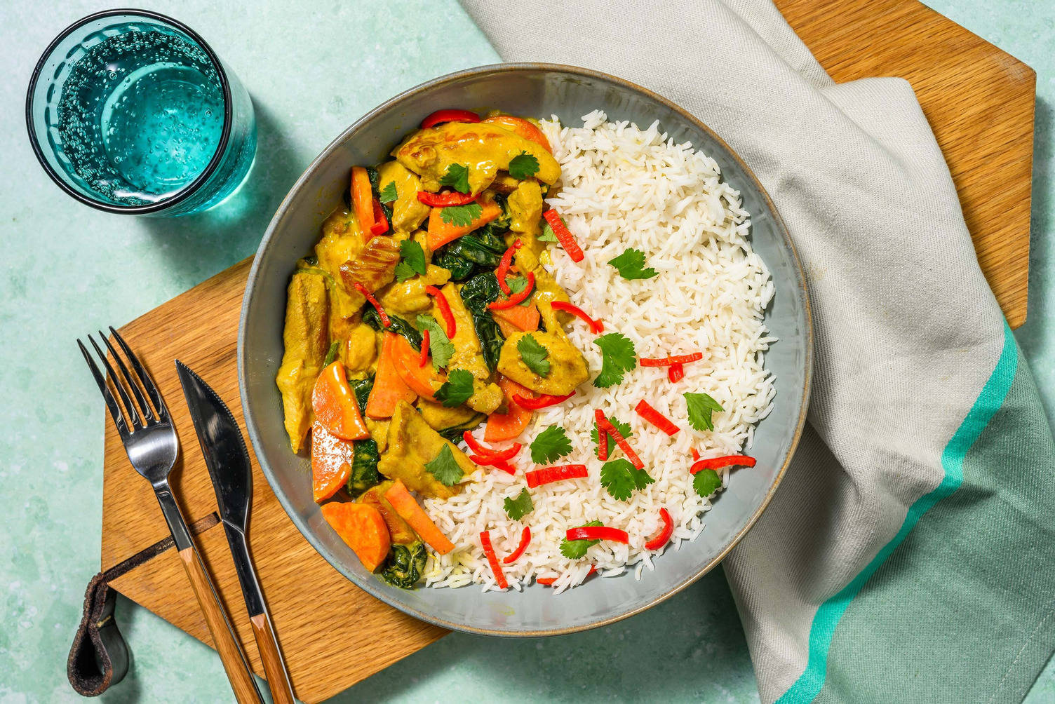 med kokos, jasminris og koriander
