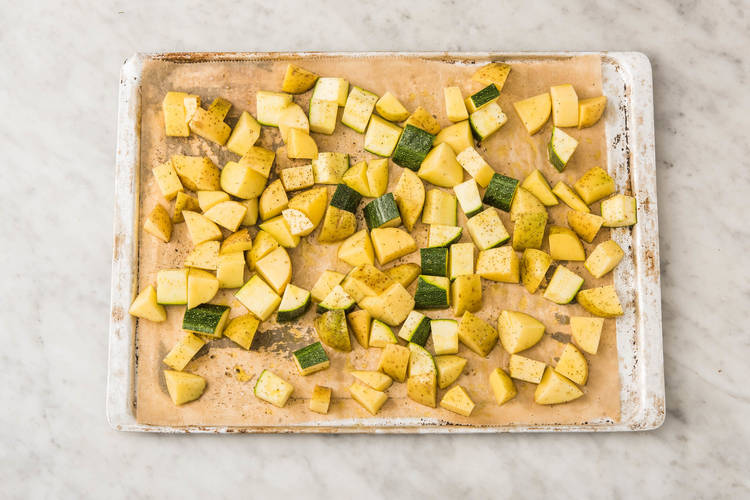 med ovnsbakte spinatpoteter og søt sennepssaus