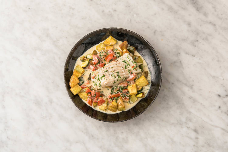 Middelhavsinspirert torsk i tomat- og olivensaus