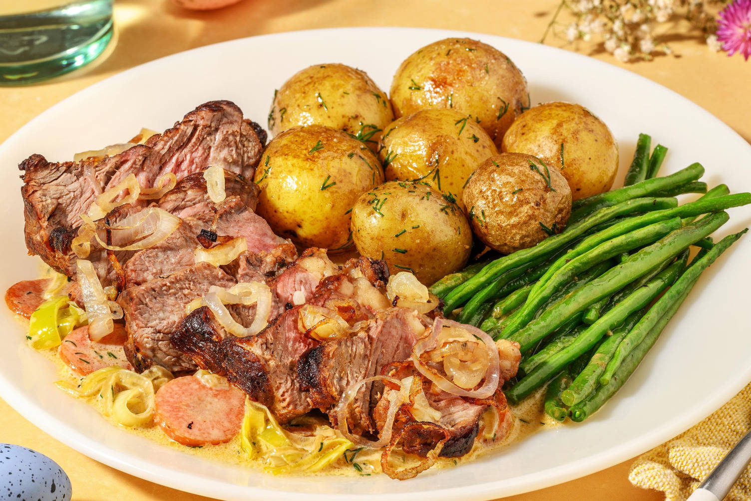 Hos HelloFresh finner du et godt utvalg av oppskrifter med lam. Blant annet tilbyr vi deilige alternativer som pistasjpanert lam med rødvinssaus, timianstekt lam med myntedressing og oreganomarinert lammeculotte. Hver oppskrift byr på spennende smakskombinasjoner som kan gjøre hverdagen din litt mer spennende.