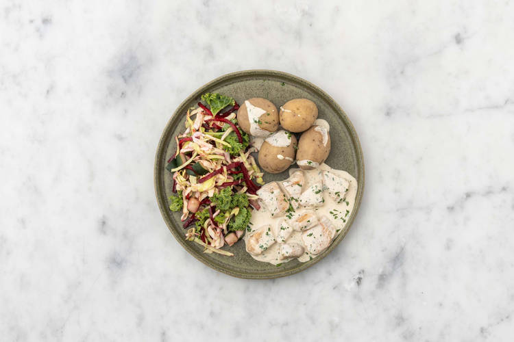 I dag skal vi lage en rett som hele familien kommer til å elske! Vi lager en kremet svinekjøttgryte med persille, som er krydret med vår herlige krydderblanding, Hvitløksflørt. Vi serverer gryta med kokte poteter og en sprø agurksalat med kål.
