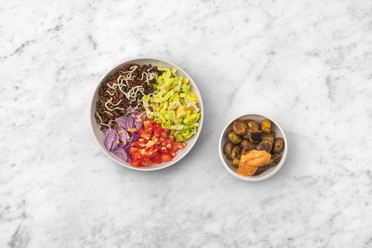 Quick veggie mince burger salad
