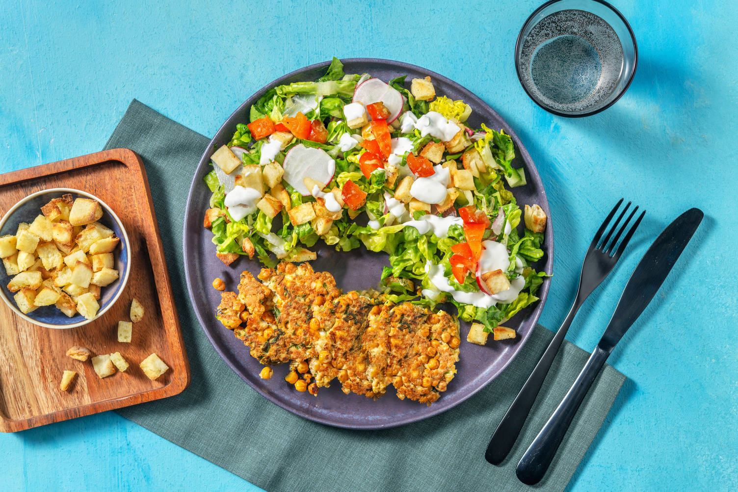 Anrett laks, rotgrønnsaker og kremet agurksalat på tallerkener.