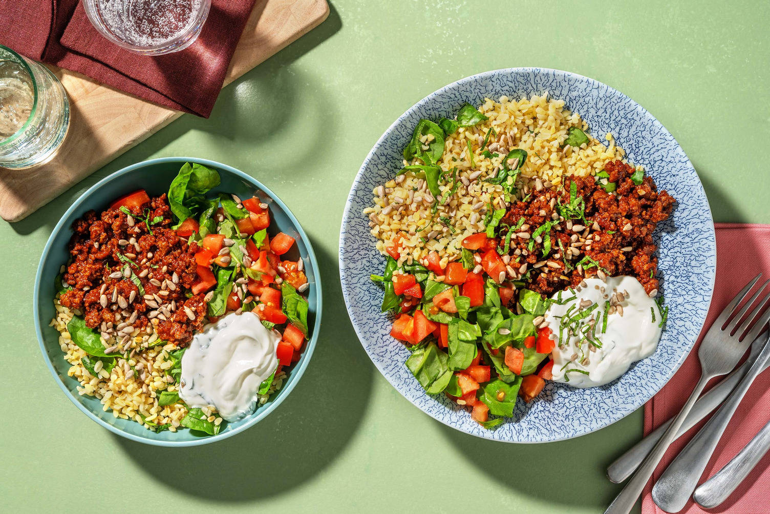 Spinat kan tilberedes på mange forskjellige måter. Du kan blant annet blansjere, statuere og dampe denne allsidige grønnsaken. Det er imidlertid viktig å merke seg at siden spinat består av 91 % vann, vil den visne veldig raskt, og at den avgir mye væske når den kokes. Hos HelloFresh kommer alle matkassene våre med trinnvise oppskrifter om hvordan du tilbereder ingrediensene dine på riktig måte.